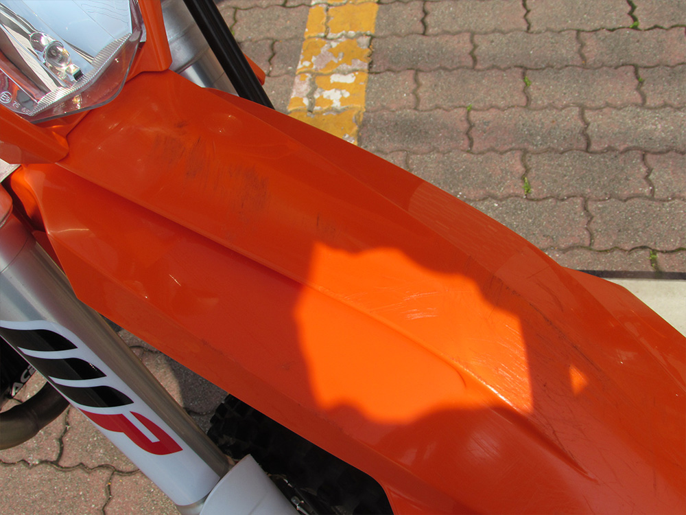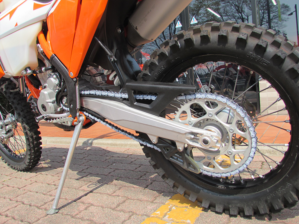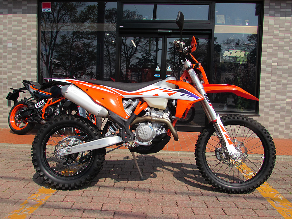 ワンオーナー車2023MODEL 250EXC-F入荷しました。クーリングファン、アチャルビススキッドプレート、リアディスクガード装着済です。前後タイヤはIRC VX40。令和7年8月にスイングアームピボット、ステムベアリングをグリスアップ。メンテナンスも頻繁に行っており、前オーナー様が大事に乗られていた車両です。自賠責保険1年付です。