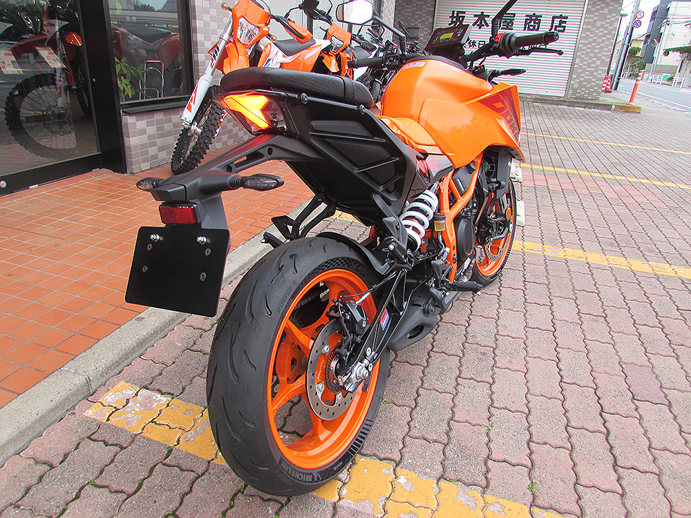 ワンオーナー車の2024年モデル390DUKEが入荷しました。走行距離も少なくETC2.0付。人気のオレンジカラーですのでお早めにご検討くださいませ。