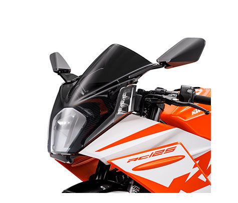 | KTM SUPERSPORTの顔ともいえるKTM RC125は、卓越したウインドプロテクションを実現するエアロダイナミクススクリーンに、LEDポジションライトとインジケーターを備えた新型LEDヘッドライトを搭載し、最適な視認性を提供します。 | |